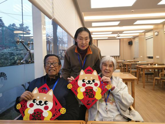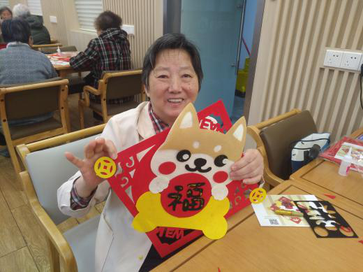 “福”即是新年的象征,贴“福”字也是春节的一种象征。因此,我院特组织此次以“福贴的制作”为主题的活动,让长者通过自己的双手,勾勒出“狗狗抱福”的福贴。