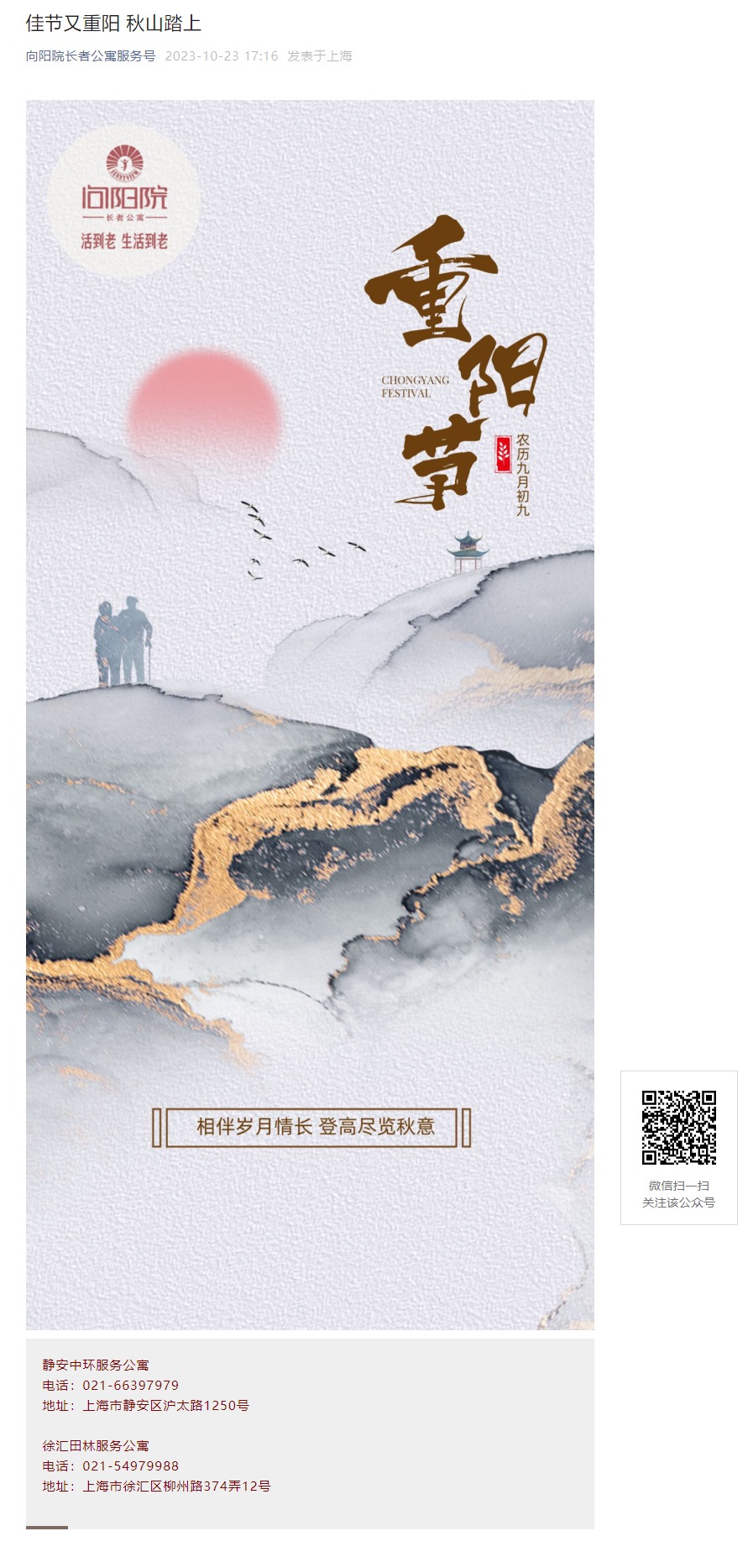 我们随时为您提供专业的咨询服务,欢迎通过以下方式与我们联系, 让我们为您和您的家人提供最贴心的养老服务。