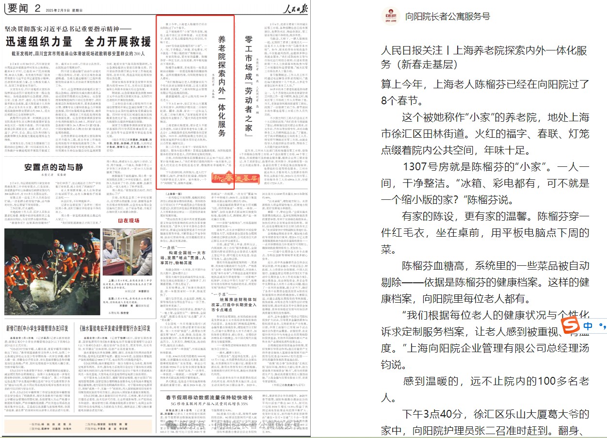 人民日报关注丨上海养老院探索内外一体化服务(新春走基层)